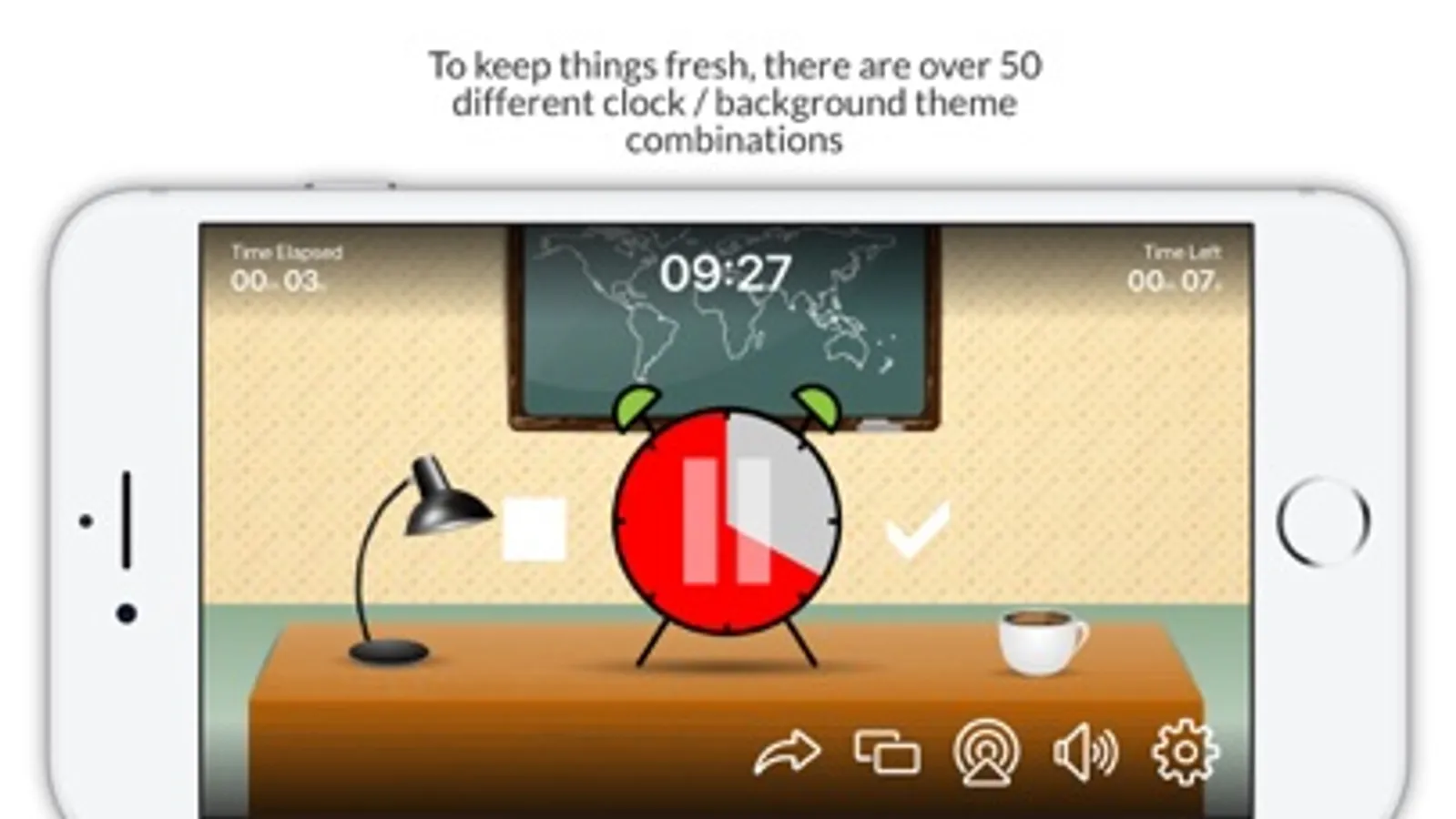 • To keep things fresh there are over 50 Alarm clock / Background theme combinations (with more to come!)