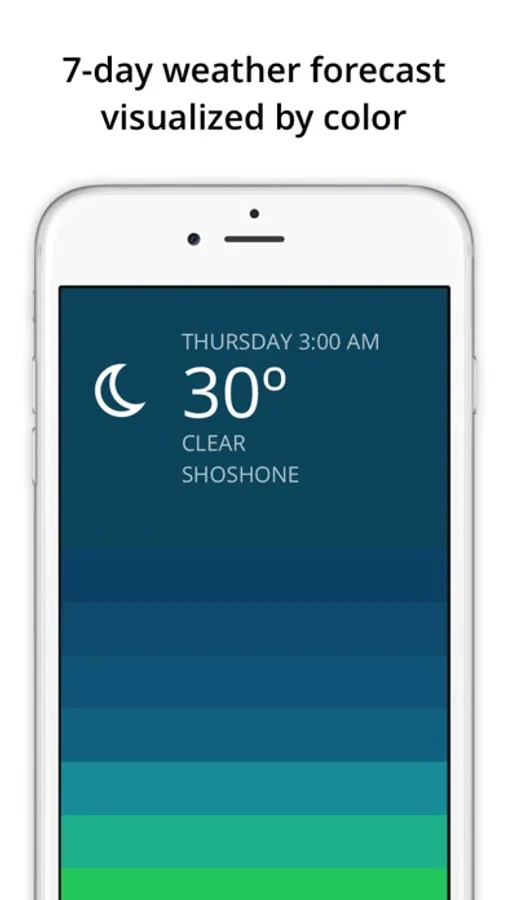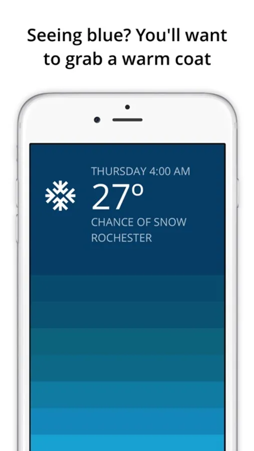 Blue visualizes your 7-day weather forecast in a fast and colorful interface. Swipe up to see hourly weather represented by color in a unique visual gradient, helping you quickly recognize weather patterns and plan your day accordingly.