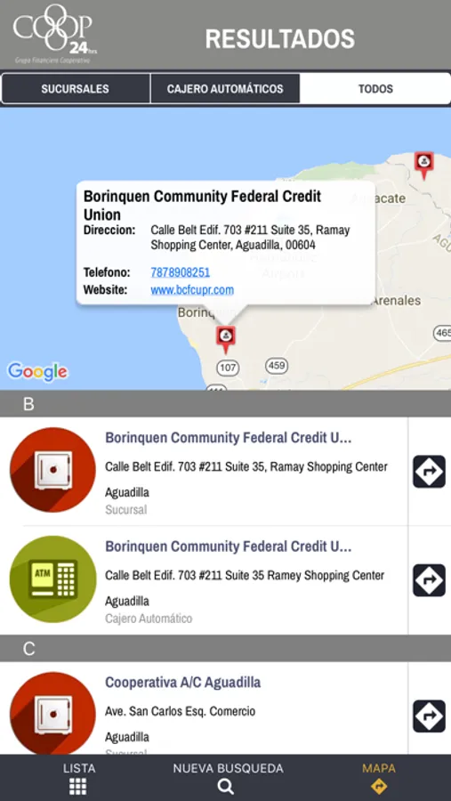 Esta es la aplicación oficial para localizar las sucursales y cajeros automáticos afiliados a Coop 24.