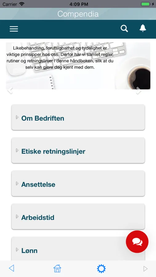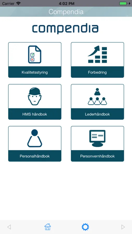 App for Compendia’s systems. The user can easily report deviations to the improvement system and gain access to manuals for HR, management, HSEQ and quality.