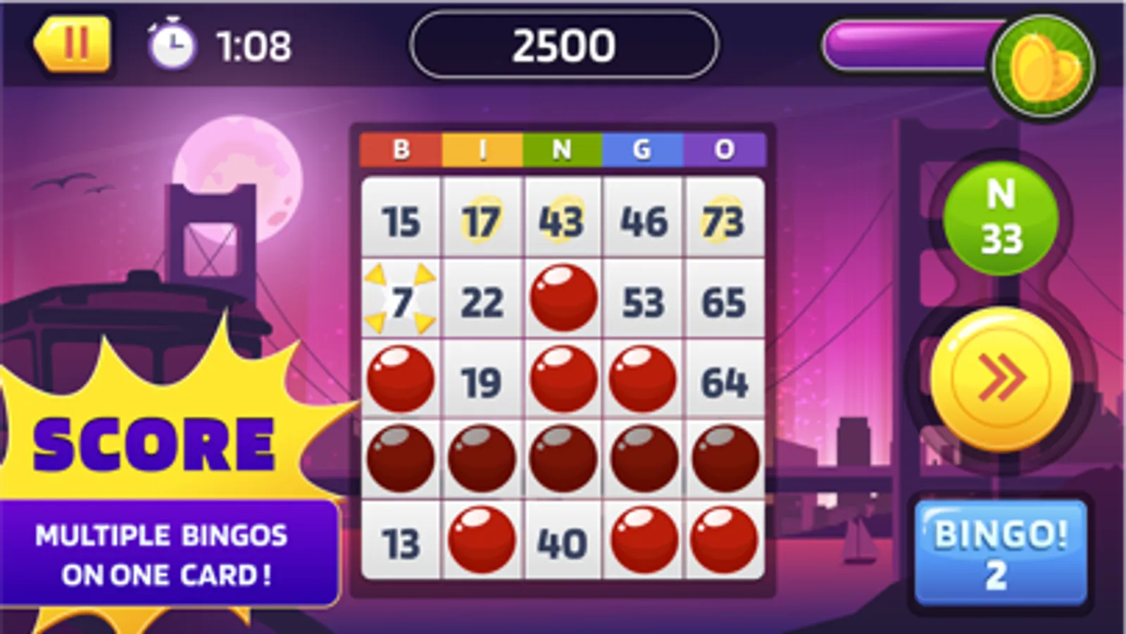 Cycle through as many bingo balls as possible, covering your cards with daubs and showering yourself in coins, xp and prizes!