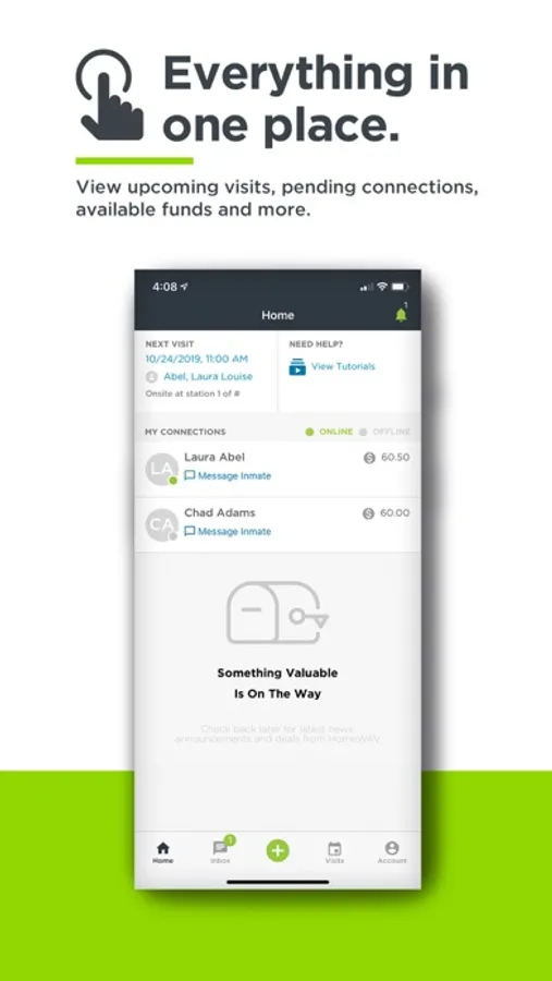 - Once logged in, the inmate will see you are available and can initiated a phone call, video call or message (*If allowed by facility).