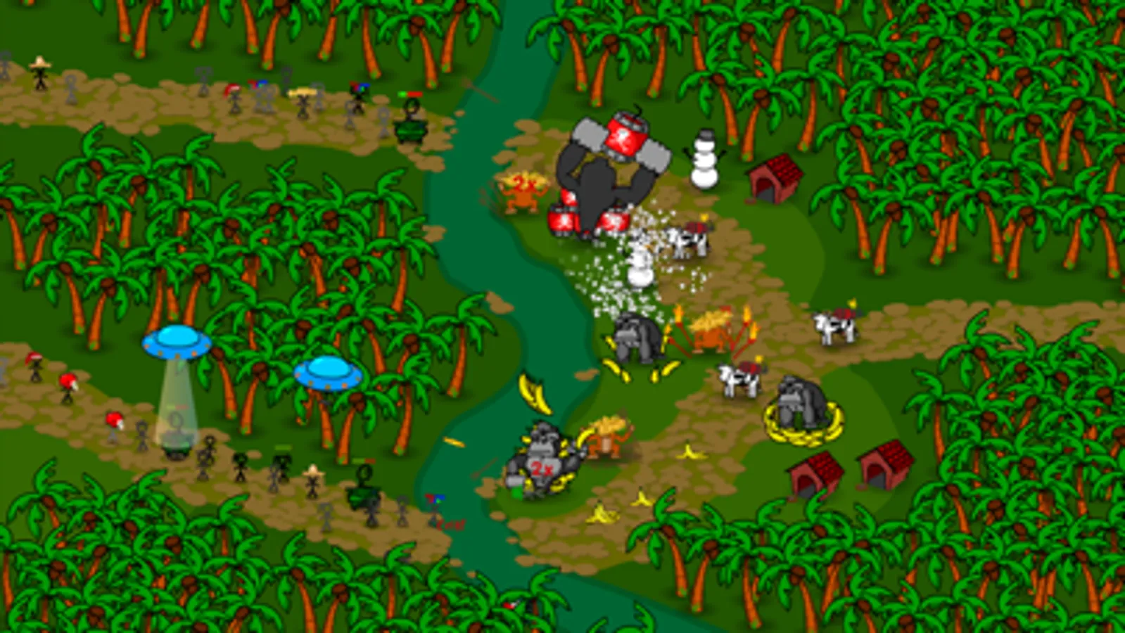 Fight off waves of groupies through epic battles of bananas, pitchforks, and the occasional UFO.