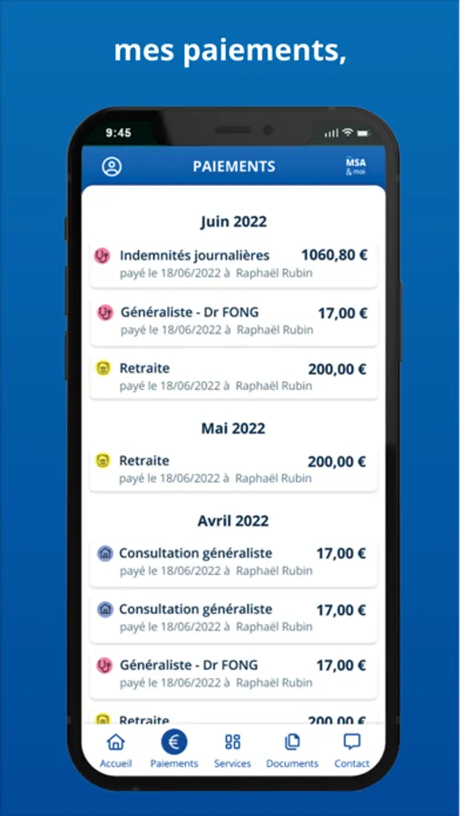Avec l’application « ma MSA & moi », vous pouvez consulter tous les paiements effectués par votre MSA :