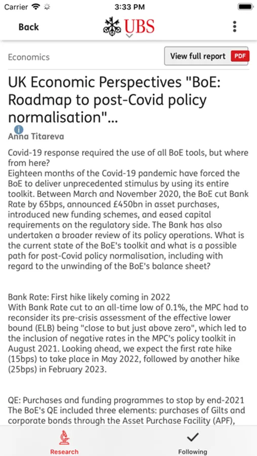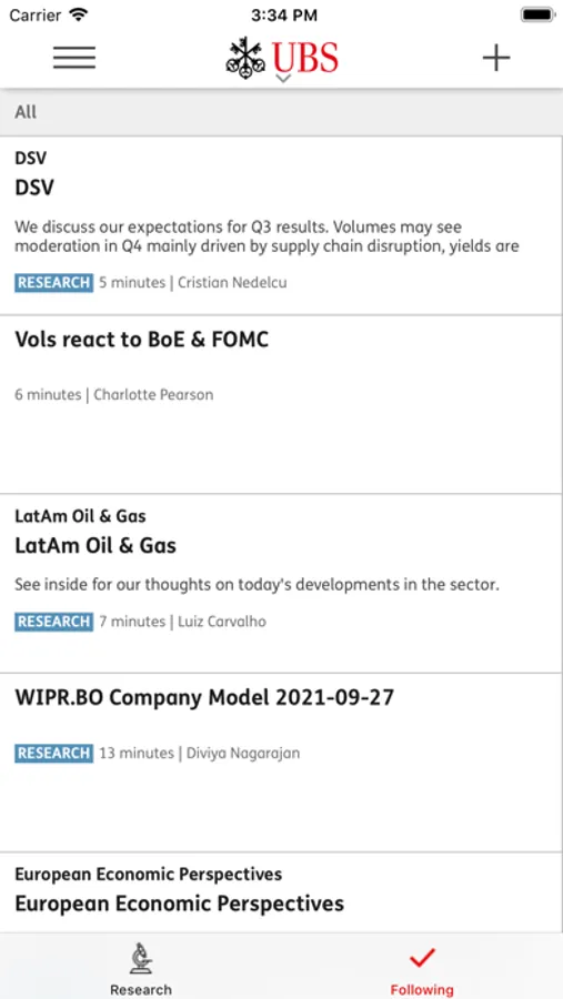 - View sales & trading commentaries and Research from UBS experts that you already follow