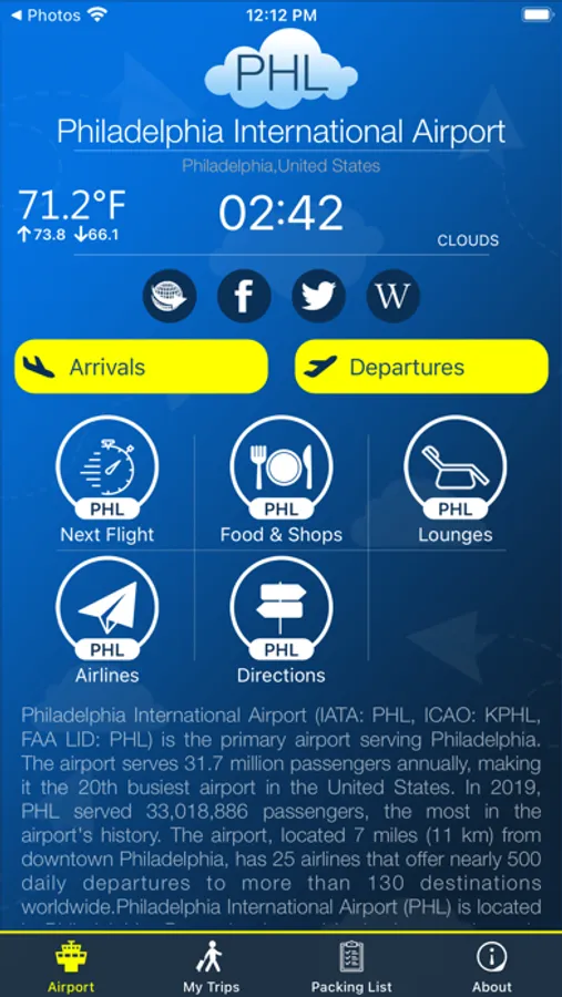 App lets you know if your flights delayed or cancelled and gives you the tools needed to quickly find an alternate flight from Philadelphia.