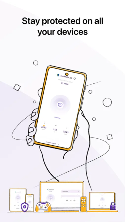 • Enjoy safe and private internet access in one tap