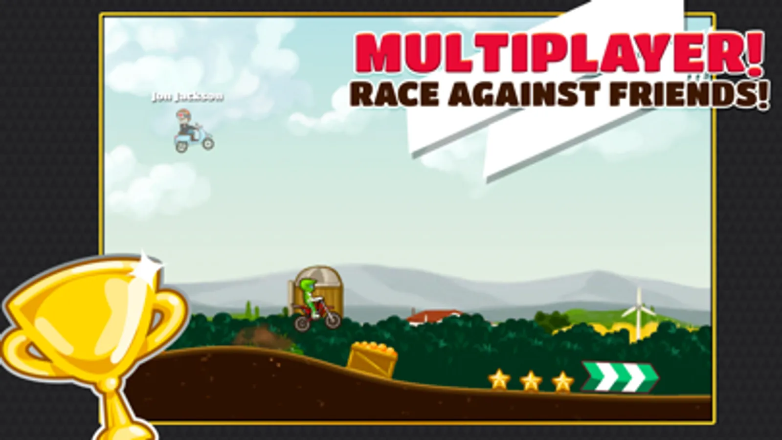It’s time to take your bike off the road, customize your rider and race against your friends in the new Multiplayer Race mode!