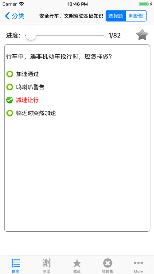 * 分类学习: 题目分门别类,每类选择题与判断题可随时切换