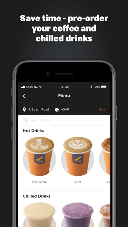 • Pre-order barista-made coffee, hot and chilled drinks from our Z Espress range