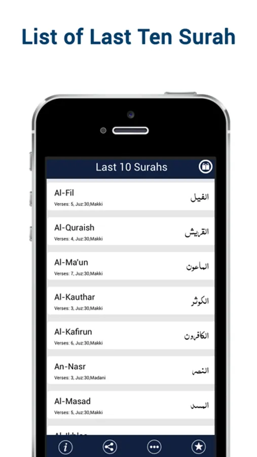 Audio Recitation of all last ten surah’s of divine book in soulful voices of multiple reciters makes this app more fruitful and allows the user to correct their pronunciation.