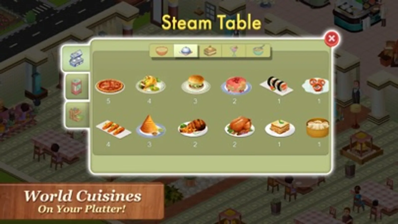 • PERSONALISED GAMEPLAY: Serve worldly cuisines by cooking and serving hungry FOODIES walking into your restaurant!