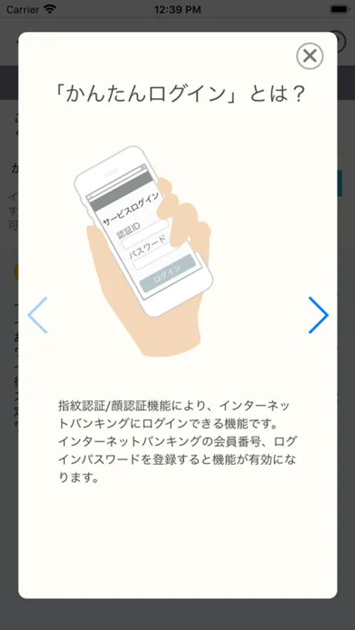 スマートフォンに登録された端末認証機能を利用して、インターネットバンキングにワンタッチでログインする機能です。