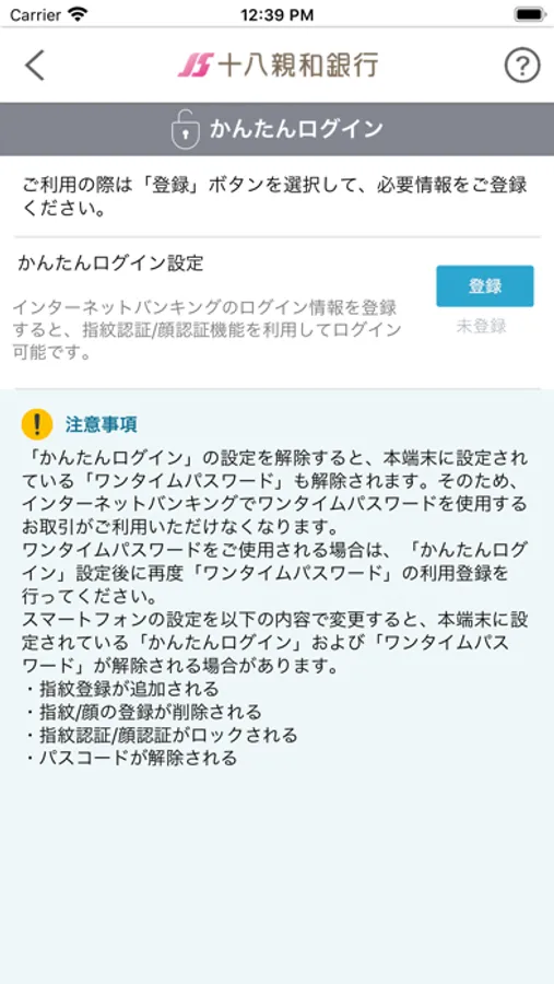 ※ワンタイムパスワードのご利用は、事前にかんたんログインの設定が必須となります。