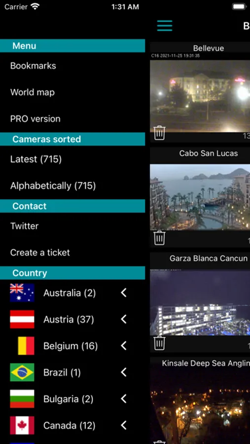 On each camera you can choose filters to get a better image or simply a more artistic view. Once you've found a camera you like, you can bookmark it and take advantage of the iCloud sync to find it on all your devices.