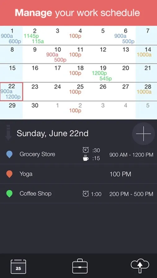 Set your shift times. See them all at a glance. Set alerts to remind you. Add up your hours. Share your schedule with family and friends.