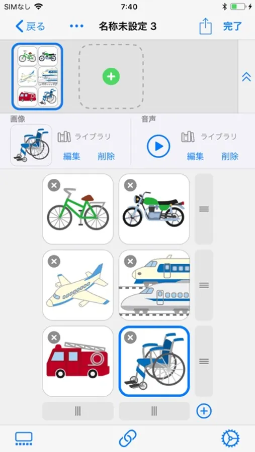 コミュニケーションキャンバスは、シンボルを格子状に配置するキャンバスです。シンボルをタップすると音声が再生されて、他者とのコミュニケーションを助けることができます。1つのキャンバスには複数のページを追加することができ、フリックで切り替えながら操作できます。キャンバスの編集は、ドラッグ・アンド・ドロップで行と列を入れ替えるなど、直感的な操作で行うことができます。