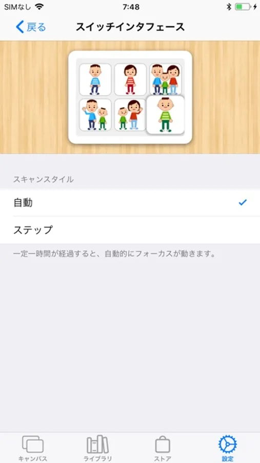 肢体が不自由な方でも操作できるようなサポートも実装しています。iOSに特有のスクロール時にバウンスする挙動をオフにすることができます。シンボルの読み上げを、画面に指が触った時にするか、指が離れた時にするかを選択することができます。スイッチインタフェースに対応しており、多くの機能をスイッチのみで操作することができます。