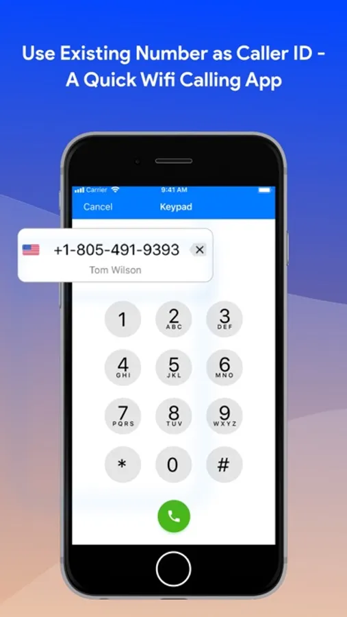- Use the app to make real phone calls over WiFi or data plan if no network or roaming.