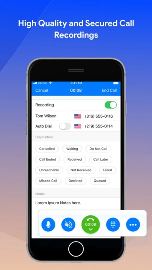 - Filtering by dispositions Call Ended, Busy, Call Back, etc.