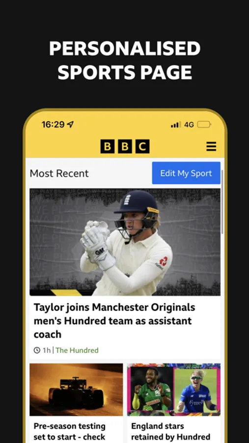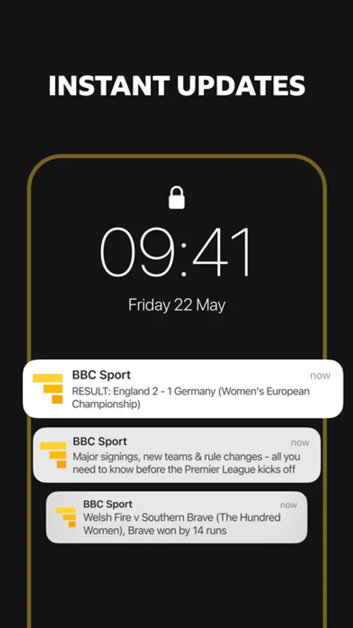 Receive personalised notifications that get delivered directly to your locked screen. Set notifications for top sports stories, plus more than 400 football teams, dozens of cricket and rugby teams and every Formula 1 race!