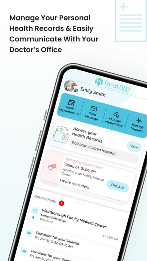 healow™ lets you communicate with your doctor’s office and access up to date medical records. You will be able to access your appointments, lab results, vitals, manage medications and other personal data all within one app. From the healow™ app you can manage multiple accounts and access your and your family’s medical information.