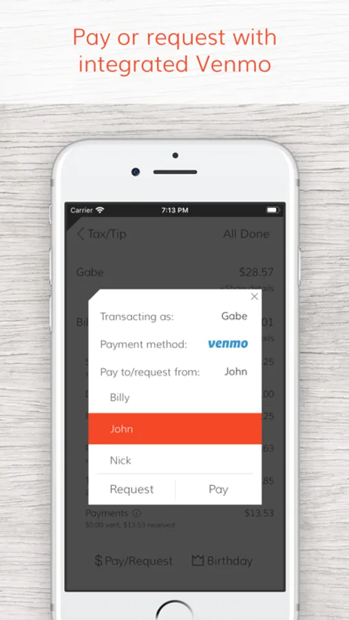 - Settle up within your group using integrated Venmo or by recording a cash payment.