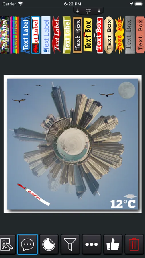 - Edit option with special effects like "Tiny Planet", "Fish Eye", sketch effect, oil painting effect and a lot more