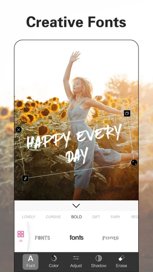 More than 400 fonts are available, a large number of creative typography styles and beautiful text layers here, all of them can be changeable for your ideas, even novices become Insta influencers in seconds!