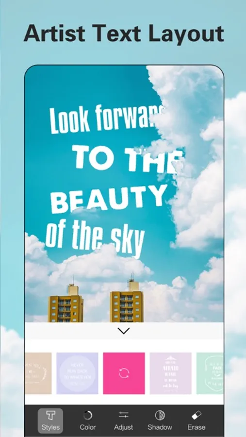 There are many adjustable edit features like three-dimensional, partial erasing, curved text, word spacing and line spacing adjustment, shadow color size, bold, capitalization and other fine adjustments make your own each moment.