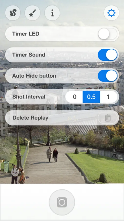 ∙ Sequential Shooting Intervals: 0, 0.5, 1 seconds (switch in options, Default 0.5)