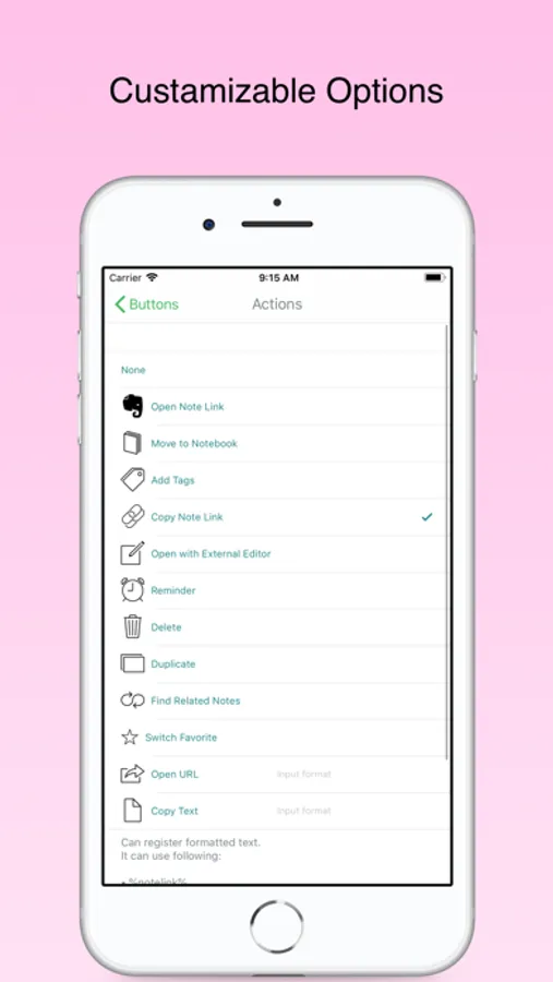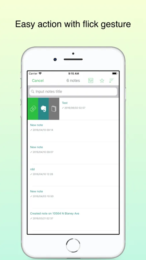 - On the Evernote note of the search result, execute the action set for the button displayed with the left and right swipe