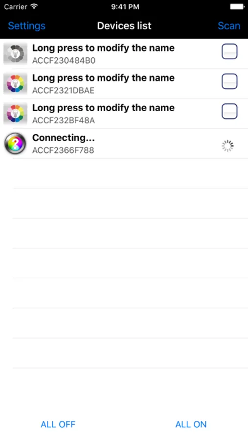 But these functions depend on our controller ,First of all is to power on our WiFi light Controller , then open the mobile phone WiFi connection page to connect our WiFi equipment, our WiFi device name is "LEDnetxxxxxxxxxxxx" format, if connect success, quit page and Start the Software, now you can control the light by your Phone.