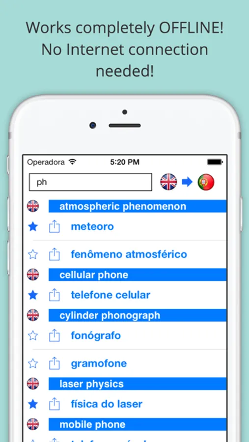 * Works offline! No Internet connection needed, the perfect translator for your trips, your studies, or when no data connection is available.