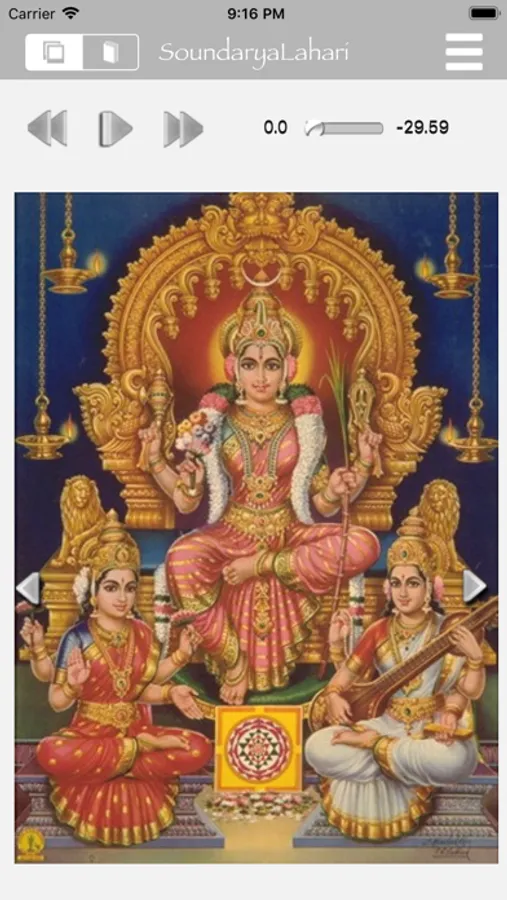 # 2. Picture of Goddess Devi contains both landscape & portrait (which fits iPodTouch,iPad,iPhone all versions )we can switch goddess picture by tapping on image icon.(Top Left hand corner)