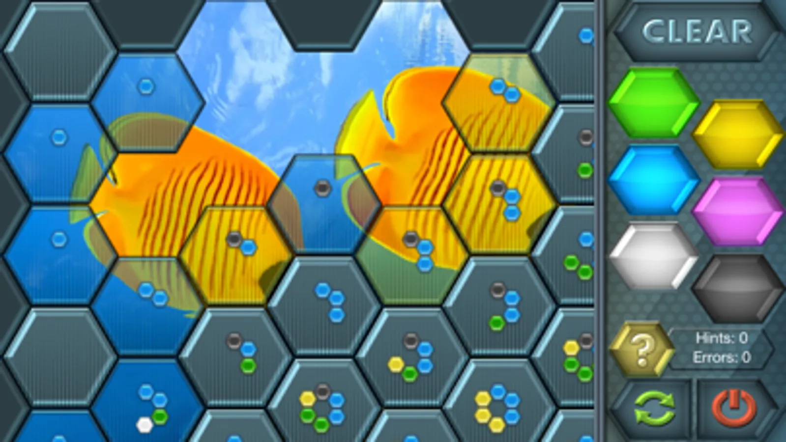 New HexLogic puzzles offer addicting logic challenges with the reward of colorful graphics and rich eye candy to the puzzle app world. HexLogic - Undersea contains 69 puzzles of various levels of difficulty, based on 23 pictures.