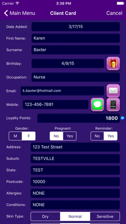 - Mail Centre: iMessage/SMS*/Email booking reminders to your clients. *iPhone version only.