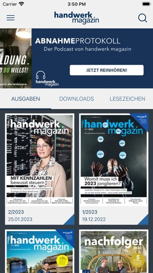 Mit der App von handwerk magazin haben Sie alle Informationen für eine erfolgreiche Betriebsführung pünktlich zum Erscheinungstermin der Print-Ausgabe auf Ihrem Tablet.