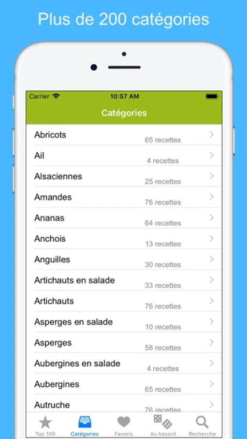 Plus de 12 000 recettes de cuisine réparties dans 200 catégories.