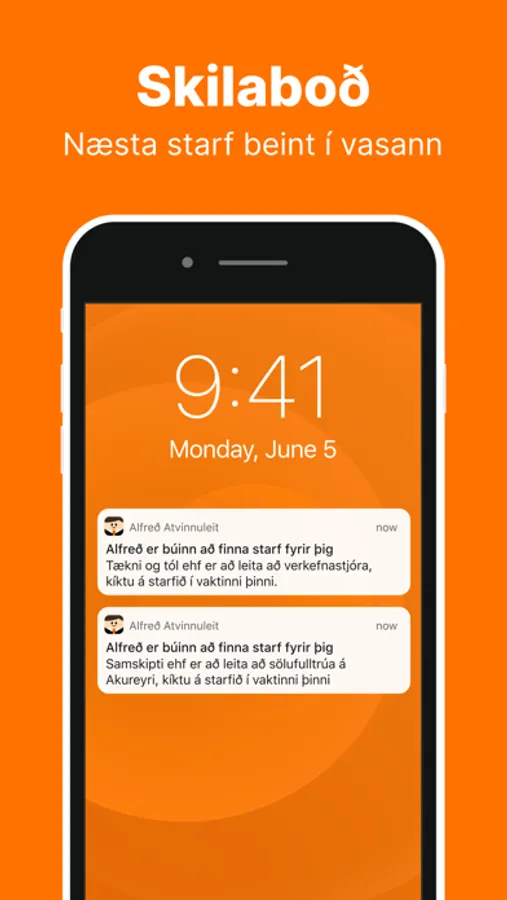 ● Vakta störf: Láttu Alfreð vakta störfin og fáðu skilaboð um leið og spennandi atvinnutækifæri birtist.