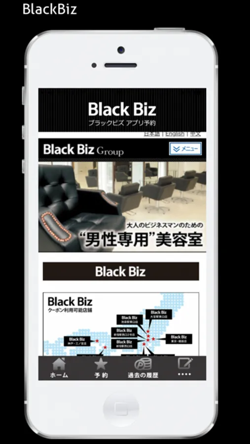 大人のビジネスマンのための男性専用美容室【ブラックビズ】の予約アプリケーションです。