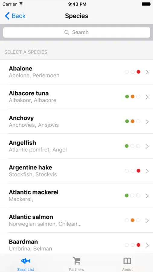 We aim to educate all participants in the seafood trade about marine conservation issues and create a market incentive to drive positive change at sea in this way. Through using our seafood list, you can know which seafood species to tuck into with a clear conscience (green), which to think twice about because of associated environmental impacts (orange), and which to avoid altogether (red).