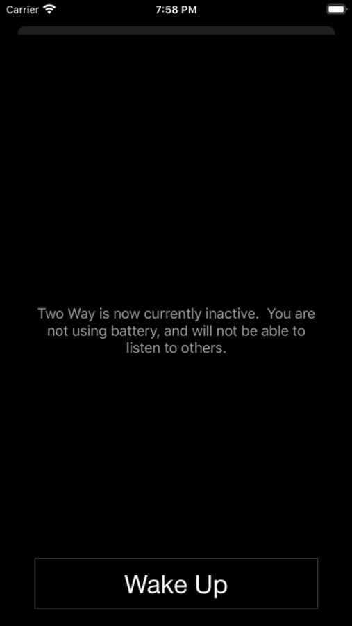 Two Way is a walkie talkie application that allows any number of users to talk to each other instantly. There is no signup required and no personal information is ever collected. Two Way's simple user interface is easy to use. Start talking to your friends, co-workers, or family members now.