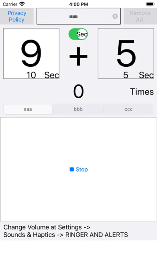 Simple free interval training timer application that alarm and vibration at the time specified in seconds. After the set time has elapsed, it counts the number of repetitions. Since it keeps the specified seconds setting, it is no need to set the seconds every time. The behavior in the background is limited. For High Intensity Interval Training (HIIT).