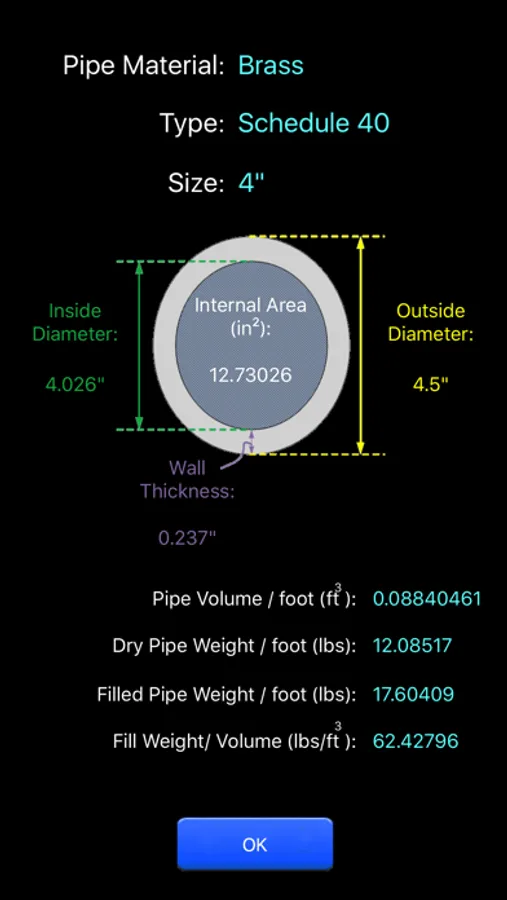 • Select from 7 different pipe materials (Steel, Brass, Stainless Steel, Aluminum, Cast Iron, PVC, and Copper)