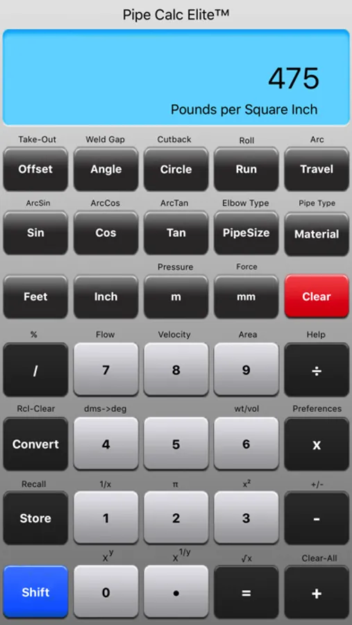 Pipe Calc Elite™ is an advanced calculator designed specifically for pipe trade professionals. This app provides quick and reliable access to standard pipe data and dimensions for 7 different piping materials. In addition, Pipe Calc Elite™ makes solving complex pressure loss equations, linear and rolling offsets, cutbacks, and other calculations you might need on the job site a breeze.