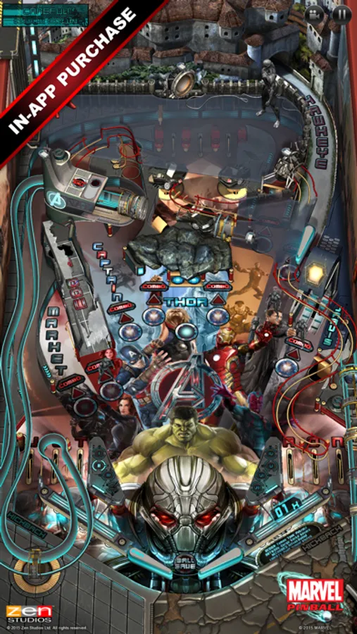 The inital Marvel Pinball download comes with Marvel's The Avengers table. Other Marvel Pinball tables can be purchased as in-app purchases.