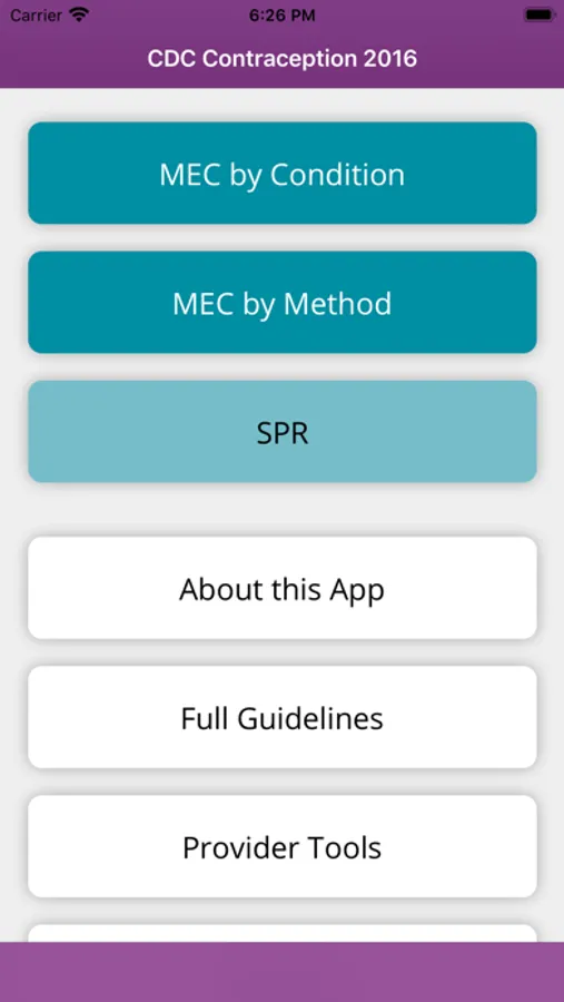 The U.S. Medical Eligibility Criteria for Contraceptive Use comprises recommendations for the use of specific contraceptive methods by patients who have certain characteristics or medical conditions. The U.S. Selected Practice Recommendations for Contraceptive Use addresses a select group of common, yet sometimes controversial or complex, issues regarding initiation and use of specific contraceptive methods. The app is developed directly from the CDC Morbidity and Mortality Weekly Report (MMWR) by the Division of Reproductive Health and covers more than 60 characteristics or medical conditions (U.S. MEC) and numerous clinical situations (U.S. SPR). These recommendations are intended to assist healthcare providers when they counsel women, men, and couples about contraceptive method choice and use. Although these recommendations are meant to serve as a source or clinical guidance, healthcare providers should always consider the individual clinical circumstances of each person seeking family planning services.