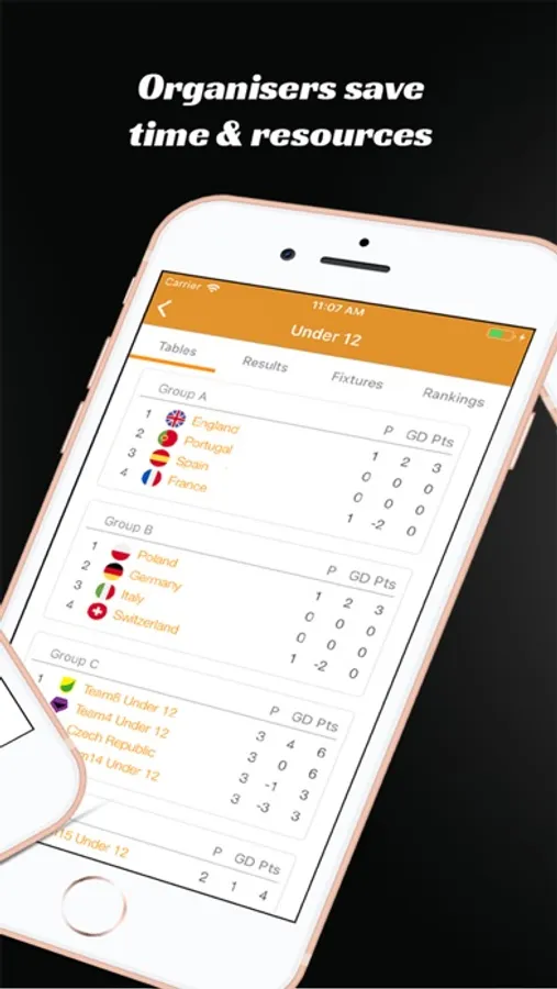 # Manage all age groups: under 6, under 8, under 10, under 12, under 14, under 16, under 18, adult, senior and play in different formats: individual or double, indoor, beach, 3-a-side, 4-a-side, 5-a-side, 6-a-side, 7-a-side, 8-a-side, 11-a-side.