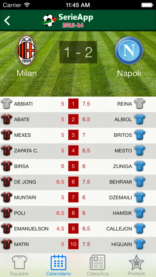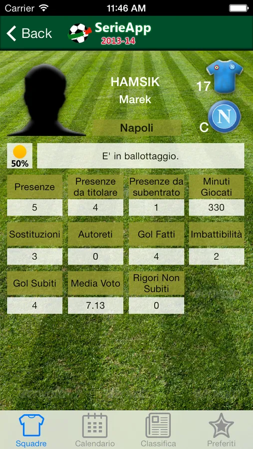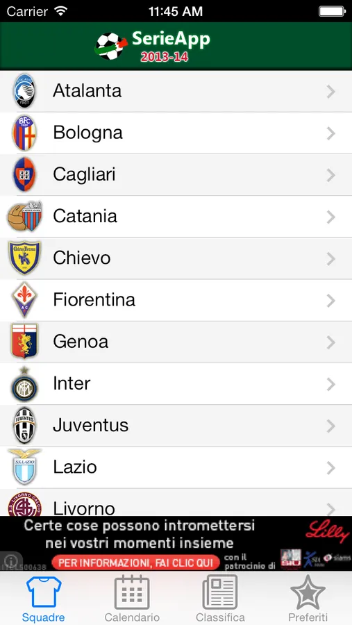 L'applicazione consente di visualizzare calendario, classifica, tabellini e statistiche di tutti i calciatori della serie A.